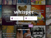 Disponível para dispositivos iOS e Android,por sua vez, o Whisper permite compartilhar pensamentos – algumas linhas de texto contra um imagem de fundo – sem que seu nome real apareça. Diferente do Secret, os usuários podem ver os posts anônimos mais populares no site, independentemente de conhecerem o autor. E, justamente por não exigir que os usuários informem qualquer informação pessoal antes de postar, eles são mais propensos a se abrirem, deixando o pensamento fluir. O nome e e-mail são exigidos apenas daqueles que queiram fazer uso do recurso de mensagens do aplicativo, o WhisperText.
